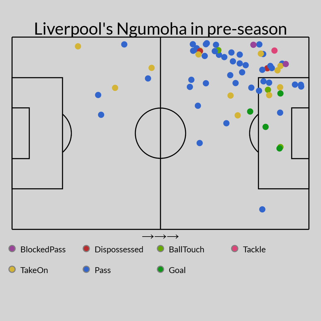 With only two minutes on the clock, Ngumoha scored a brilliant individual goal which encapsulated many of his skills. Picking up the ball in his own half, he forcefully nudged midfielder Curtis Jones aside then surged forward in a determined fashion before rifling a strike into the net from the edge of the area.